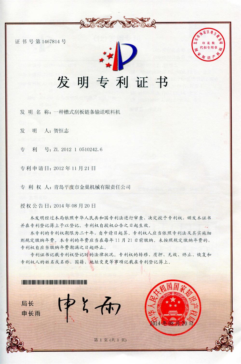 五、綜上,針對鏈板喂料機存在的缺陷,我公司深入市場走訪客戶,疏理總結,找出問題,瞄準方向,通過技術創(chuàng)新,研究出全新的“雞用刮板鏈條輸送喂料機”。